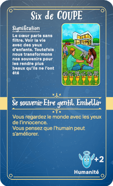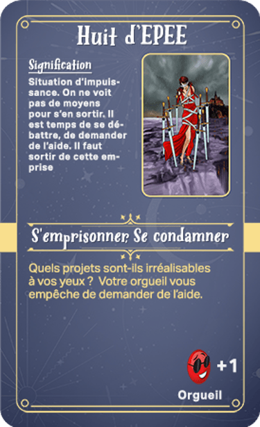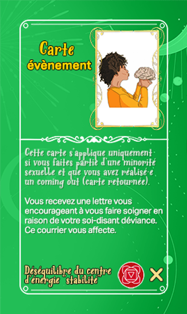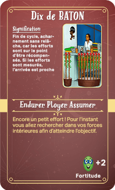 Elles se composent de cartes sur les différentes quêtes, les centres d'énergie, les peurs, l'égo, le côté obscur de l'humain, la spiritualité, les lois universelles. Des cartes justice, d'identité de genre/préférences sexuelles, financières et issues du tarot composent le solde des cartes ! Comme vous pouvez l'imaginer, elles ne sont pas toutes positives.