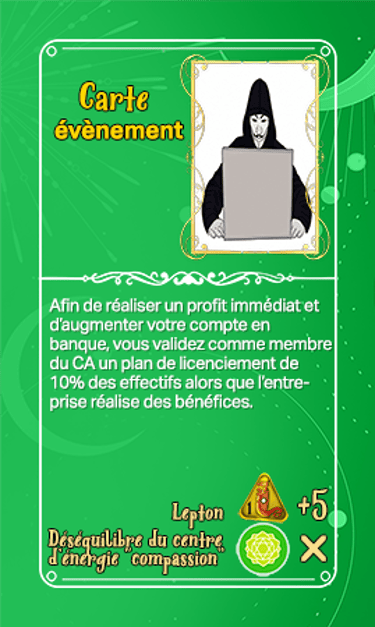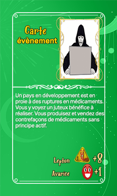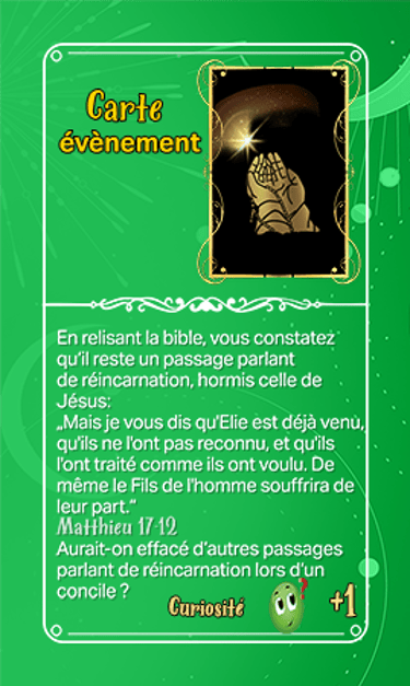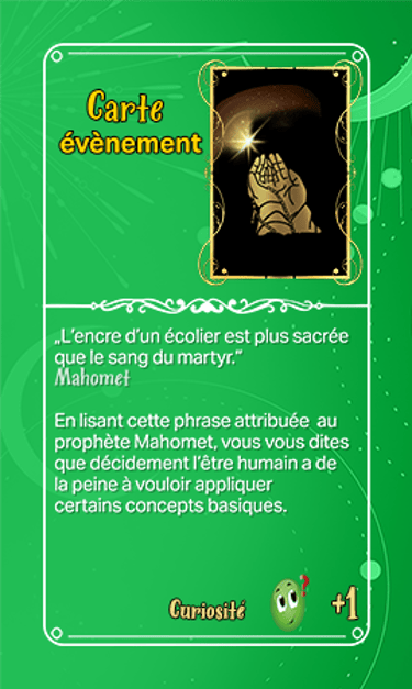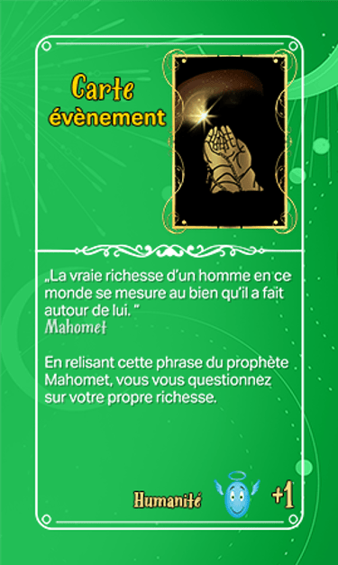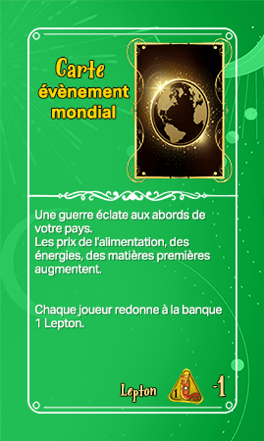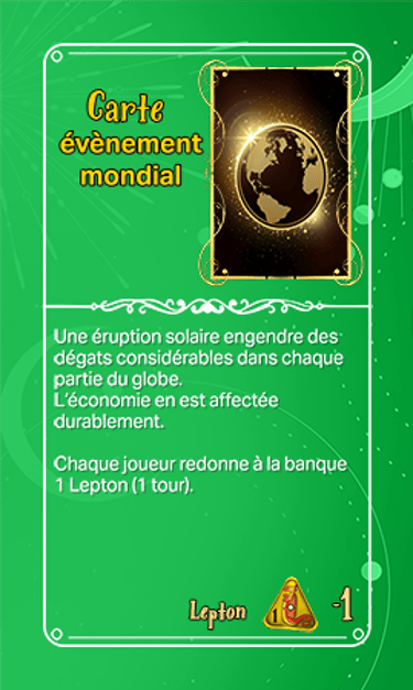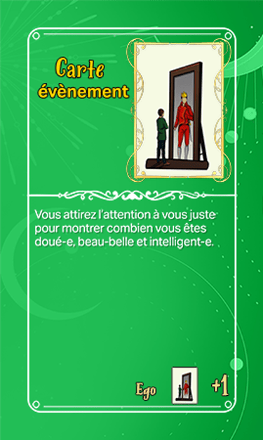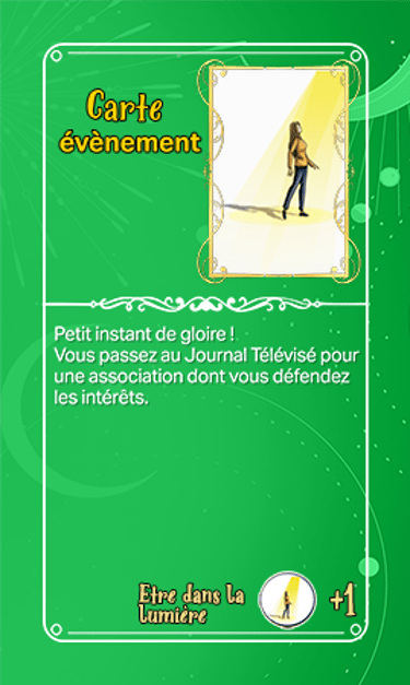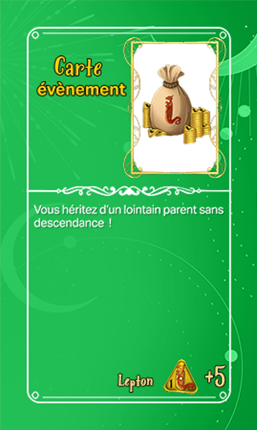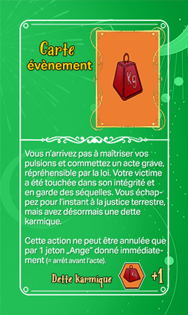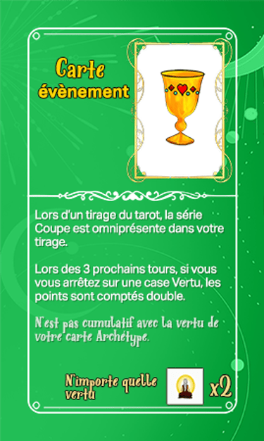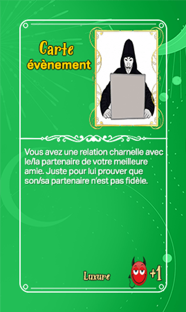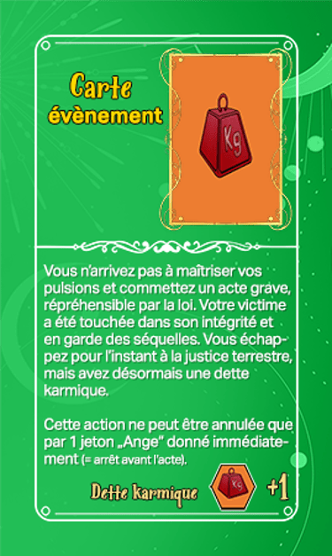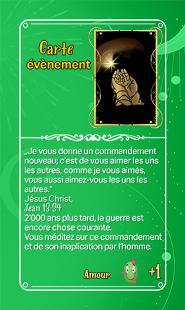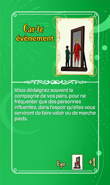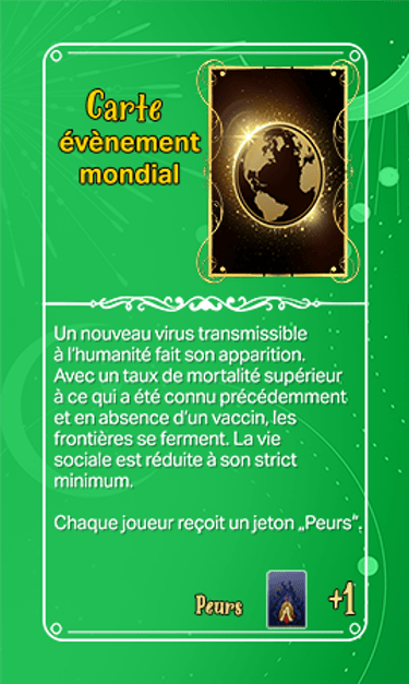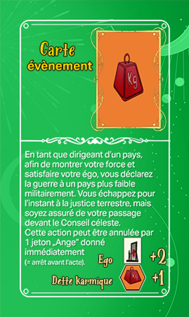 168 cartes composent les cartes évènements qui seront séparées en deux tas plus ou moins identiques en termes de nombre et ce au début de la partie. Elles seront face cachées.