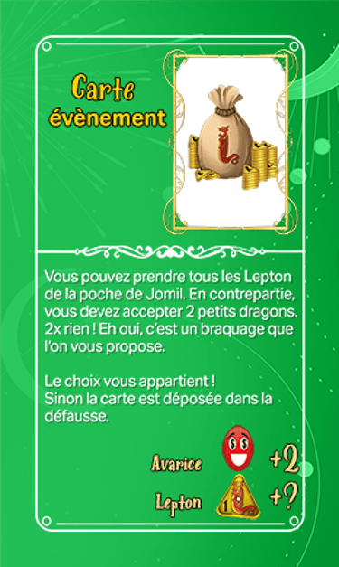 Chaque joueur qui ne sera pas dans un espace au terme de son déplacement tirera une carte évènement dans le tas de son choix. Bonne pioche ? Mauvaise pioche ? Mystère !